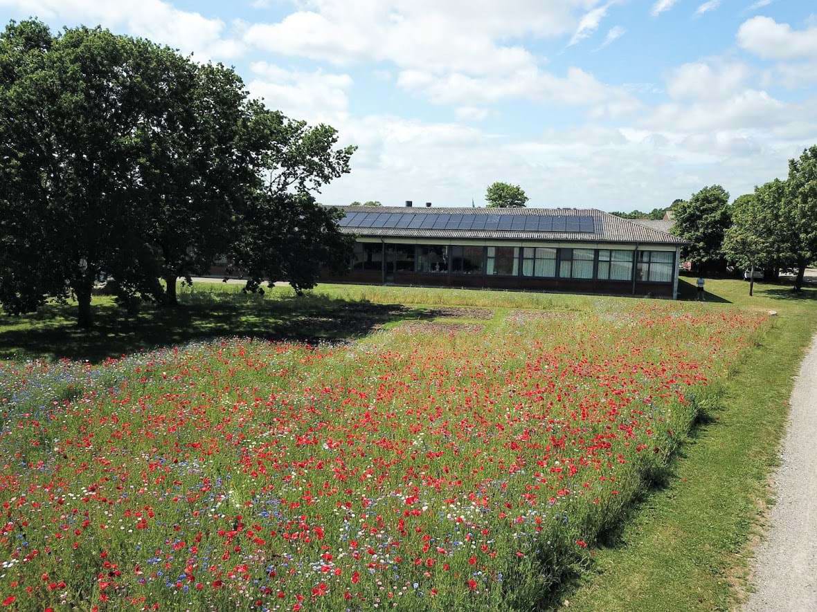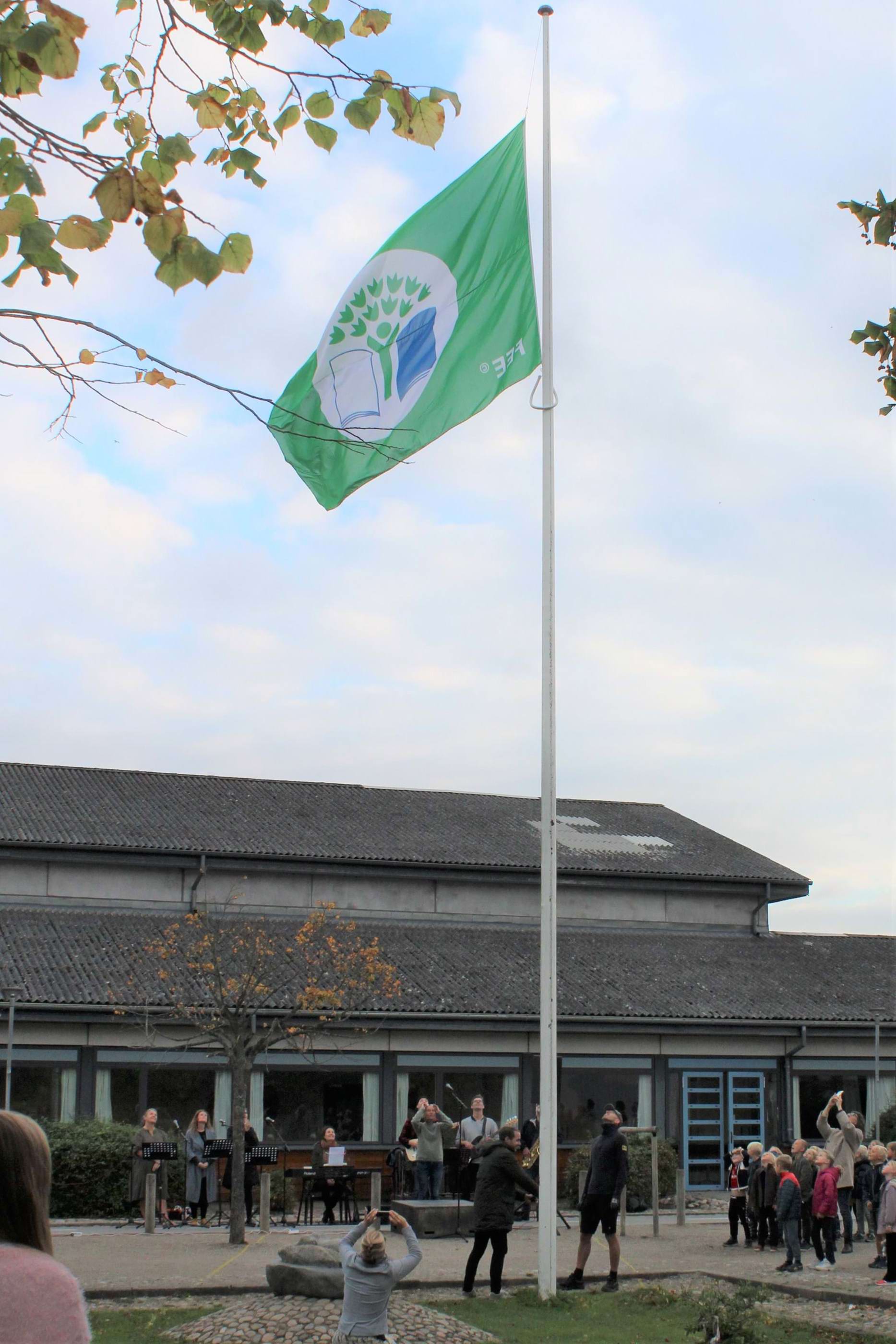 Vi har fokus på at tænke grønt og agere bæredygtigt. Det slår igennem i vores produktion af mad i kantinen, hvor vi holder en økologiprocent på 60-90. Vi har også solceller, bionedbrydelige eller kompostérbare emballager i kantinen, energihus, køkkenhaver, karklude uden plastfibre, affaldssortering og en skov - plantet i 2024. Vi tænker grønt, fordi grønne børn bliver grønne voksne - og dem er der brug for. Læs om vores projekt "Skæring Børneskov."